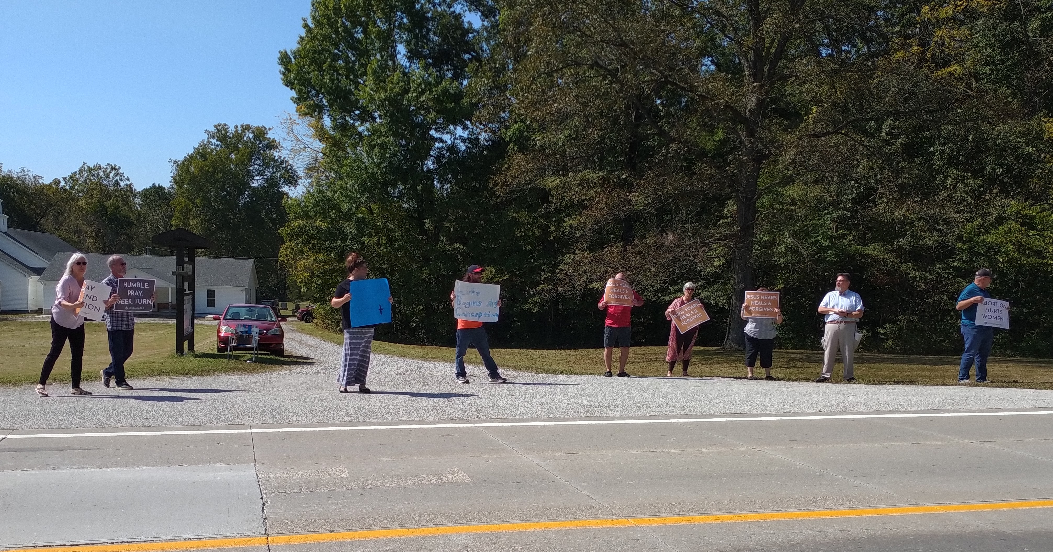 🙏 Here we are standing along the front of the church holding signs and Praying that God Ends Abortion. Thanks to all who showed support.